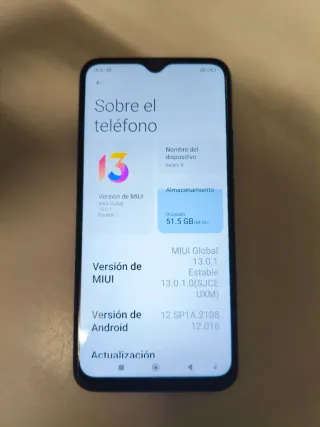 Telefono mobile Xiaomi Redmi Note 9 in colore blu da 128GB. - Versione MIUI: 13.0.4.0 - Versione Android: 12SP1A.213812.316 - Aggiornamento sicurezza Android: 01/03/2023