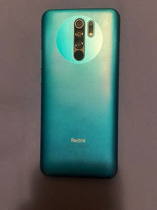Telefono mobile Xiaomi Redmi Note 9 in colore verde. - Schermo da 6,53 pollici. - Fotocamera posteriore quadrupla. - Batteria a lunga durata. Se si aggiunge una cover protettiva, non si nota la rottura del retro.