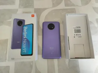 Telefono mobile Xiaomi Redmi Note 9T in colore viola. Include scatola originale. Modello: Redmi Note 9T, connettività 5G, 128 GB.
