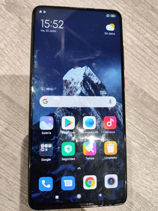 Telefono mobile Xiaomi Mi 9T Pro. Specifiche nelle foto. Viene con due custodie, una nuova. Non ha protezione per lo schermo. - Grande schermo con sfondo montagna. - Icon di applicazioni comuni come Galleria, Play Store e Google.