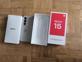 Telefono mobile Xiaomi Redmi 15 in colore grigio e bianco. In perfette condizioni, 3 mesi di utilizzo (molto poco). Include varie custodie (la maggior parte nuove), protezioni, scatola, cavo, fattura di acquisto per la garanzia, ecc. - Schermo immersivo da 6,9 FHD+. - Batteria massiccia da 7000mAh (tipica).