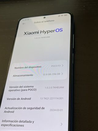 Telefono mobile Xiaomi Poco F3 in perfetto stato. Sempre con custodia e vetro. Fattura disponibile. - 6GB di RAM. - 128GB di spazio interno UFS3.1. - Schermo AMOLED 6,67" a 120Hz. - Gorilla Glass 5. - Tripla fotocamera Sony 48MP. - Processore Snapdragon 870 5G con Antutu di 800.000 punti. - Wi-Fi 6 e Bluetooth 5.1. - Batteria 4520 mAh. - HyperOS 1.0 / Android 13.