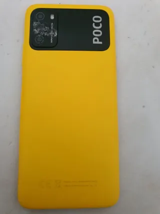 Telefono mobile Xiaomi Poco m3 in colore giallo. In buone condizioni, tutto funziona perfettamente. - Schermo con notch. - Fotocamera posteriore. - Design moderno.