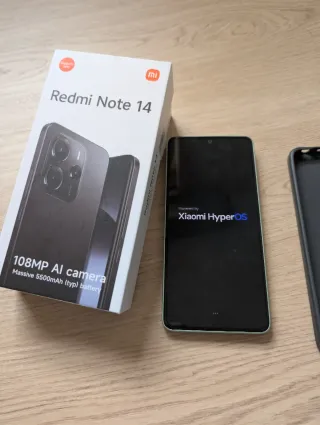 Telefono mobile Xiaomi Redmi Note 14 in colore verde. Dotato di una fotocamera principale da 108MP e una batteria da 5500mAh. - Schermo con Xiaomi HyperOS. - Supporta NFC. Include scatola originale e fattura di acquisto