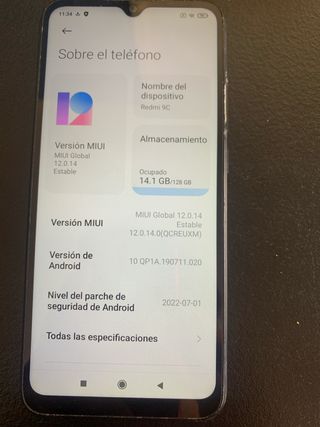Telefono mobile Xiaomi Redmi 9C. - Modello: Redmi 9C - Versione MIUI: 12.0.14 Stabile - Versione Android: 10 QP1A.190711.020 - Livello patch di sicurezza Android: 2022-07-01 - Archiviazione: 14,1 GB / 128 GB