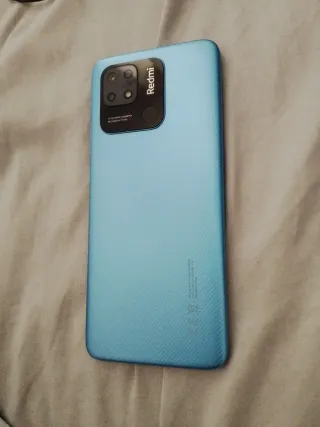 Telefono mobile Xiaomi Redmi 10C con finitura blu. Capacità di archiviazione di 64GB. Memoria RAM di 4GB. Venduto per acquistare due telefoni.