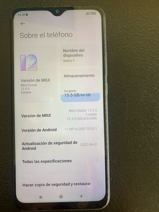 Telefono cellulare Redmi 9. - Modello: Redmi 9 - Versione MIUI: 12.5.5 Stabile - Versione Android: 11 RP1A.200720.011 - Aggiornamento sicurezza Android: 2022-04-01 - Archiviazione: 15.5 GB / 64 GB