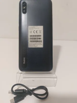 Telefono mobile Xiaomi Redmi 9A in colore blu. Include cavo. Scatola originale. È in perfette condizioni e lo schermo è privo di graffi o rotture.