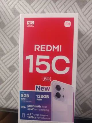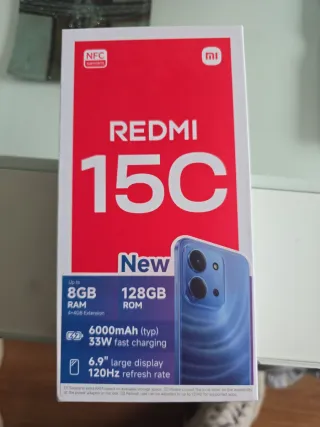Telefono mobile Xiaomi Redmi 15C in colore nero con grande capacità di archiviazione. Acquistato il 13 febbraio, con fattura. Lo vendo perché ho bisogno di più spazio di archiviazione. Non include caricatore né cavo di ricarica. Spedizione disponibile tramite Wallapop. - Schermo grande da 6,9 pollici. - Batteria da 6000 mAh. - Ricarica rapida da 33W. - Supporta 5G. - NFC integrato.
