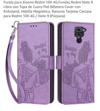 Custodia a libro per Xiaomi Redmi Note 9 e Redmi 10 4G in colore viola. Realizzata in pelle sintetica con un design inciso. - Chiusura magnetica. - Slot per carte. - Funzione supporto (kickstand). - Include cinturino da polso. Nuova, mai usata! nella sua confezione sigillata.