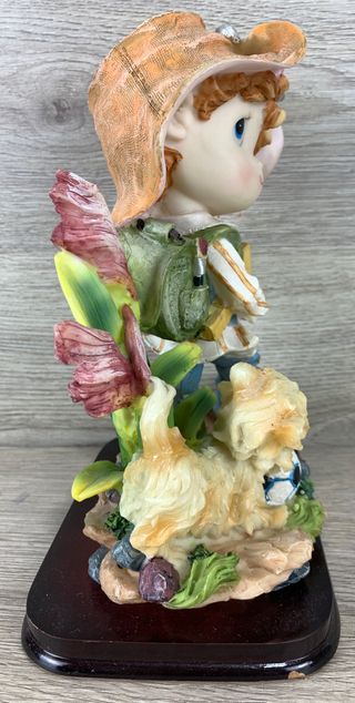 Statuetta in resina della collezione D.W. Poly. - Bambino con cappello e zaino. - Gatto con pallone da calcio. - Cono gelato in mano.