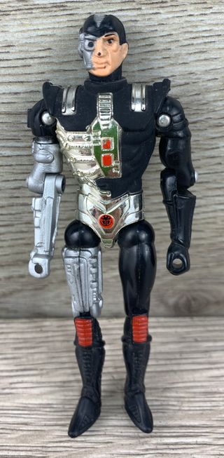 Action figure di Lord Dread, personaggio della serie Captain Power del 1986. La figura presenta un design unico con elementi cibernetici. - Dettagli metallici argentati. - Parti del corpo in plastica nera. - Accenti rossi e verdi sul petto.