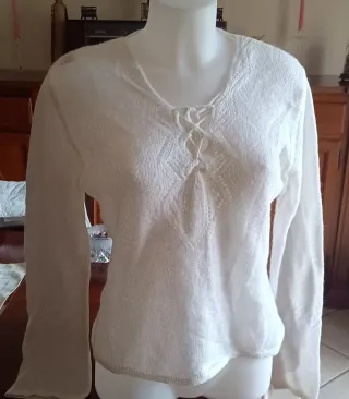Maglietta Benetton in mohair, un capo leggero e raffinato. - Maniche lunghe. - Scollo a V con laccetto. - Dettagli in pizzo sulle maniche. Taglia M, ottimo stato.