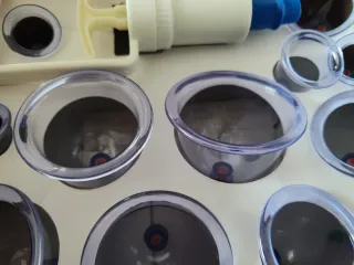 Set di coppette per terapia di coppettazione, utili per il benessere e il rilassamento. - Include diverse dimensioni di coppette. - Pompa manuale per creare il vuoto. - Adatto per uso domestico.