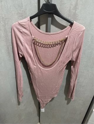 Body rosa manga larga
