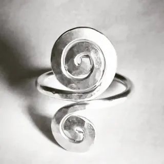 Anelli artistici in argento, realizzati a mano con design unici. - Argento martellato con finitura lucida. - Design aperto e regolabile.