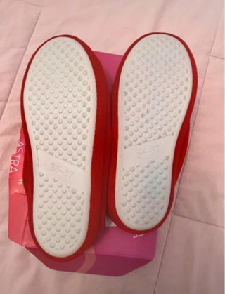 Comode pantofole invernali con simpatico pupazzo di neve. - Interno foderato in morbido pile. - Design a tema natalizio con fiocchi di neve. - Colore rosso vivace. -Taglia 36/37
