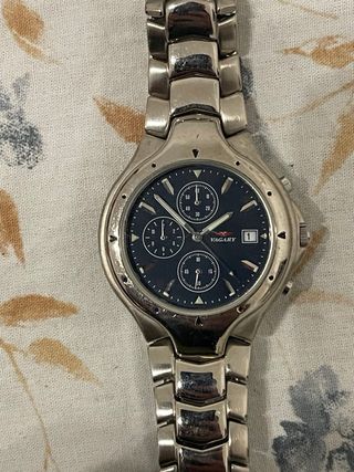Elegante orologio da polso con quadrante blu e cinturino in acciaio. - Cassa in metallo argentato. - Dettagli del quadrante in argento.
