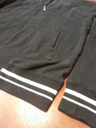 Felpa Adidas Essentials nera, in ottime condizioni. Un capo sportivo e versatile. - Logo Adidas sul petto. - Tre strisce bianche sulle maniche. - Zip frontale completa. - Tasche laterali. - Collo alto.