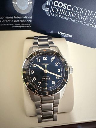 Vendo Longines Spirit zulu time da 39mm nero con ghiera in ceramica nera e grigia. L'orologio è stato indossato solo due volte ed è nuovo senza graffi o segni di usura.Il bracciale è stato regolato per un polso da 16cm e sono presenti le maglie aggiuntive. Acquistato ad Ottobre del 2025, ha ancora 5 anni di garanzia. Vendo perché ho intenzione di acquistare un orologio molto più costoso e quindi voglio sfoltire la mia collezione di orologi