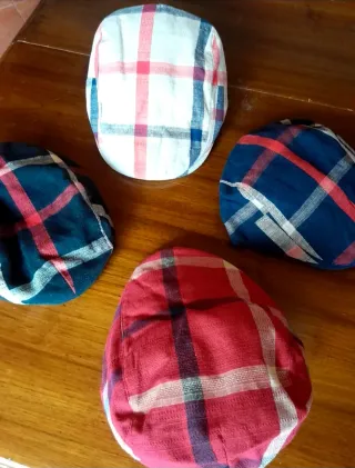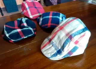 Coppole siciliane con fantasia a quadri, tutte nuove. - Fantasia a quadri su base bianca, blu e rossa. - Fantasia a quadri su base blu scuro e rossa. - Fantasia a quadri su base rossa e bianca.