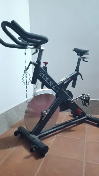 Spinbike TOORX SRX90 in ottime condizioni, ideale per allenamenti a casa. - Design robusto e stabile. - Manubrio regolabile. - Sella comoda e regolabile in altezza e profondità.