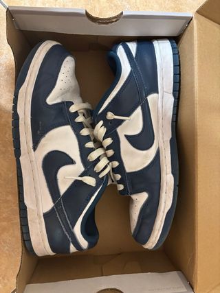 Scarpe Nike Dunk Retro in ottime condizioni, con una combinazione di colori blu navy e bianco. - Design iconico Dunk. - Tomaia in pelle. - Suola in gomma.