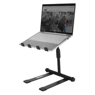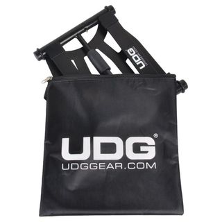 Supporto per laptop UDG di colore nero, ideale per DJ e musicisti. - Design pieghevole e compatto. - Include borsa per il trasporto.
