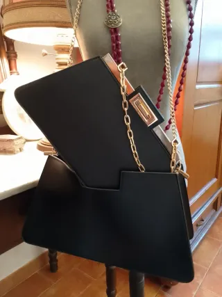 Due borse vintage,nuove,con design geometrico,catene dorate una per portare a spalla l'altra a mano, anche insieme sono leggerissime ed eleganti La più piccola sta dentro la grande e viene tolta aprendo le cerniere laterali di quest'ultima. Borsa piccola cm 34 base Borsa grande cm 38 base In perfetto stato nuove senza cartellino Vi prego no prenotazioni! Non accetto offerte perché poi sparite..