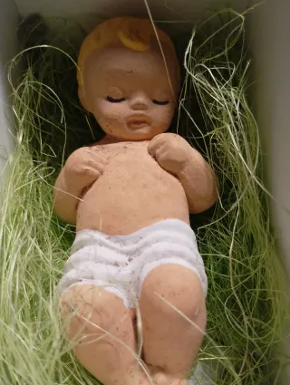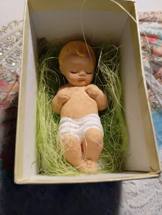 Antico Gesù Bambino, adagiato su paglia, Nella sua scatolina In gesso Cm 13 Segni del tempo come da foto Spedizione attente ed accurate, sempre accompagnate da regalo.
