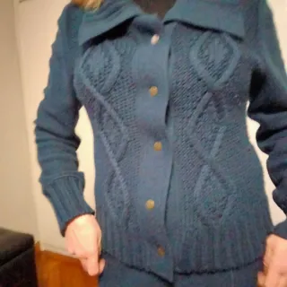 Elegante tailleur da donna in lana cotta, composto da tre pezzi. Un completo versatile e raffinato. Veste una taglia 44 - Giacca con collo a revers e lavorazione a trecce. - Gonna abbinata. - Tessuto morbido e confortevole.
