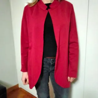 Elegante cardigan da donna in un vivace color rosso. - Design aperto sul davanti. - Maniche lunghe. - Collo a scialle.
