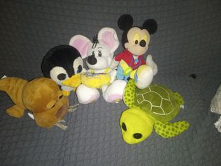 Set di peluche con diversi personaggi, tra cui un pinguino, un topo, un tricheco, un topolino e una tartaruga. - Peluche morbidi e colorati. - Ideali per collezionisti o come regalo.