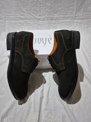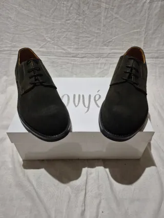Eleganti scarpe da uomo in camoscio. - Materiale scamosciato di alta qualità. - Design classico con allacciatura. - Finitura verde scuro versatile. - Fondo in vera gomma.
