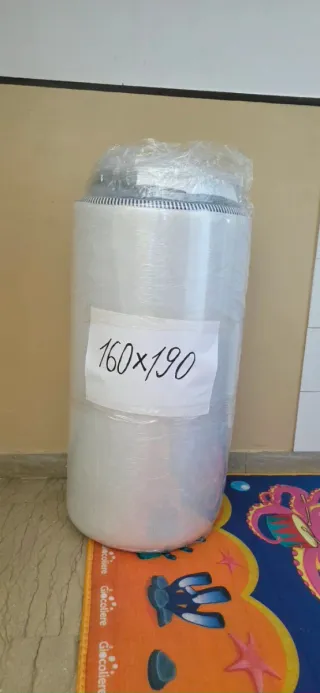 Materasso avvolto in plastica protettiva, pronto per il trasporto. - Dimensioni: 160x190 cm.