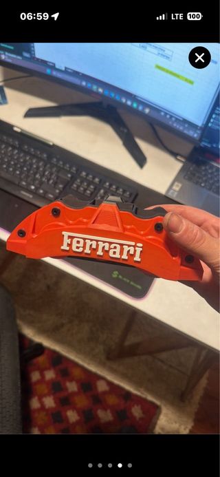 Originale portapenne a forma di pinza freno Ferrari, colore rosso. - Design ispirato alle pinze freno delle auto Ferrari. - Colore rosso acceso.