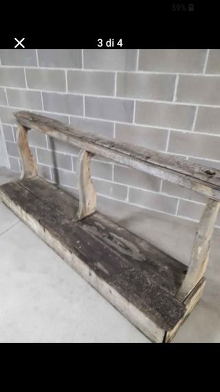 Banchi o inginocchiatoi realizzati in legno grezzo di abete arte povera da restaurare lunghezza 185 cm altezza 85 cm - Struttura in legno massello. - Base ampia e robusta. - Gambe curve e supporti verticali.