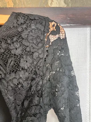 Elegante abito da donna in pizzo. - Maniche lunghe in pizzo. - Dettagli in pizzo sul corpetto. - Orlo in pizzo.