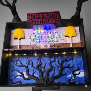 Espositore a tema Stranger Things, perfetto per gli appassionati della serie. Include luci decorative per un'atmosfera suggestiva. - Design ispirato a Stranger Things. - Dotato di lucine LED integrate.