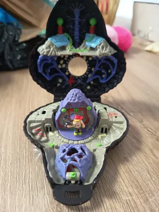 Un pezzo da collezione della serie Mighty Max. Questo giocattolo presenta un design unico e dettagliato. - Colore nero predominante. - Dettagli colorati come occhi verdi e bocca rossa. - Logo distintivo sul fronte.