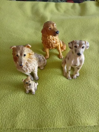 Set di quattro statuine di cani (diverse razze) realizzate in resina indistruttibile. Curati nei minimi particolari. In perfette condizioni, senza segni di usura. Altezza 14 cm. Disponibile solo con spedizione, senza consegna in persona. #cani #statuine #resina #decorazioni #collezione - Dettagli curati. - Ideali per collezionisti o come decorazione.
