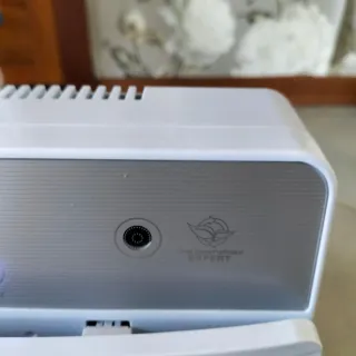 Purificatore d'aria dal design moderno e pulito. - Pannello di controllo con indicatori luminosi. - Funzioni: On/Off, Speed, Sleep, Low, Fast, 1Hr, 3Hrs, Timer. - Indicatore qualità aria: Good, Moderate, Poor. - Funzioni aggiuntive: Negative Ion, UV Lamp. - Colore bianco. - Telecomando.