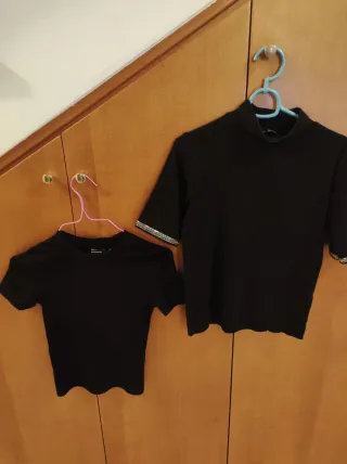 Set di due maglioncini. - Maglioncino a collo alto con dettagli sulle maniche. - Maglioncino a maniche corte con collo tondo. Li vendo insieme 6 euro