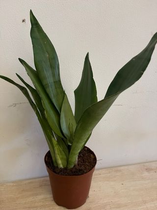 Pianta Sanseveria Moonshine con foglie larghe e argentate. Ideale per interni. - Foglie di colore verde-argento. - Crescita verticale.