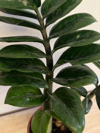 Pianta Zamioculcas in vaso. - Foglie verdi lucide. - Crescita lenta.