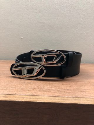 Cintura in pelle con fibbia metallica a forma di logo. Unisex 105 x 2.5 cm - Design ovale con logo Diesel. - Materiale in pelle resistente.