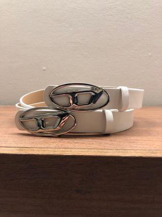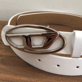 Elegante cintura Diesel di colore bianco, perfetta per completare ogni outfit. - Fibbia ovale in metallo argentato con logo Diesel. - Materiale: ecopelle.