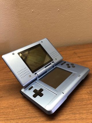 Console Nintendo DS Fat in colorazione blu. La console è funzionante. - Doppio schermo. - Tasti direzionali e pulsanti. - Altoparlanti integrati.