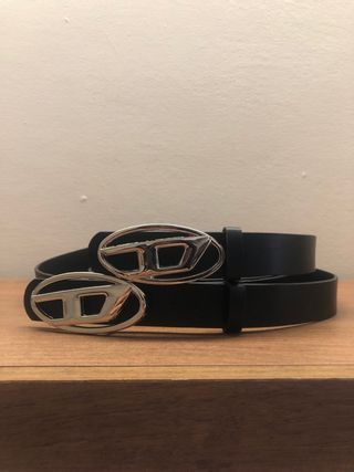 Elegante cintura Diesel, mai utilizzata. - Fibbia ovale in metallo argentato con logo. - Cintura in pelle nera.