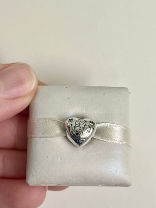 Charm a forma di cuore con la rappresentazione di una mamma che abbraccia sua figlia. Un simbolo d'amore. - Design a cuore. - Incisione dettagliata di mamma e figlia. - Finitura lucida. - Argento 925